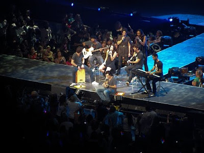 Je voudrais aussi plus de jeux sur la scène... j'ai pas trop accrochée sur la scène plate et un seul écran géant... donc, retour des escaliers, des écrans qui bouges, des confettis... du SHOW quoi ^^